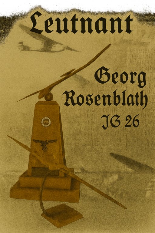 Georg Rosenblath wurde am 19.09.1912 in Marburg/Lahn geboren. Seine Mutter war eine geb. Keuscher aus Kirchhain. Der Name Rosenblath kommt fast ausschließlich im mittelhessischen und nordhessischen Familien vor, so zum Beispiel in Kirchhain - Marburg und entstammt von alten evangelischen Familien ab. In den 30iger Jahren muss Georg als junger Mann den Weg zur Fliegerei gefunden haben und wie soviele seine Altersgenossen schloss auch er sich dem Deutschen Luftsport Verband an, um seiner Leidenschaft dem Fliegen nachgehen zu können. Er brachte es aufgrund seines Könnens und wohl auch seiner langjährigen Erfahrung bis zum Fluglehrer, der auch überregional seine Schützlinge schulte. Dies beweisen die zahlreichen Originalaufnahmen, die bei den beiden Holzskulpturen mit dabei waren. Ob Rosenblath vor oder am Anfang des Krieges zur Luftwaffe ging, kann bis jetzt nicht festgestellt werden. Sicher ist jedoch, dass er seit dem 01. Januar 1942 bei der II. Gruppe des Jagdgeschwaders 26 als Leutnant in der Stammrolle eingetragen war. Die zweite Gruppe lag zu diesem Zeitpunkt in Frankreich auf dem Flugplatz Abbeville - Drucat einem der wichtigsten Jägerstützpunkte der Luftflotte 3 an der Kanalküste. Dort wurde im März 1942 die II. Gruppe vollständig auf die Fw 190 A umgerüstet und lag in ständiger Bereitschaft um einfliegende Jagd- und Bomberverbände der Engländer abzuwehren.