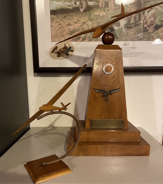 Diese Geschichte ist eine fast unglaubliche Erzählung von Zufällen und Fügungen. Über SOME habe ich einen Bekannten, der wiederrum einen Freund hat, der gerne auf Flohmärkte im Raum Saarbrücken geht. Dieser machte ihn auf einen Fund bei einem Antik Händler aufmerksam. Es handelte sich um zwei Holzskulpturen, die jeweils zwei Segelflieger aus der Zeit der 30iger und 40iger Jahre zeigten. Eine dieser Skulpturen trug eine Plakette mit einer Inschrift und dem Bezug zu Treysa - Ziegenhain. Mein Freund schickte mir Bilder dieser beiden Skulpturen zu, ohne zu wissen, dass Treysa - Ziegenhain ganz in der Nähe von uns liegt. Ich zeigte natürlich umgehend Interesse an den beiden Stücken und auf Vermittlung meines Freundes kam ich an die Telefonnummer des Händlers. Ein Handel wurde schnell ausgemacht und ich konnte dann Anfang Dezember diese Stücke regionaler Zeitgeschichte entgegennehmen. Zu diesem Zeitpunkt ahnte ich jedoch noch nicht, dass noch mehr Geschichte hinter diesen Stücken stehen würde.